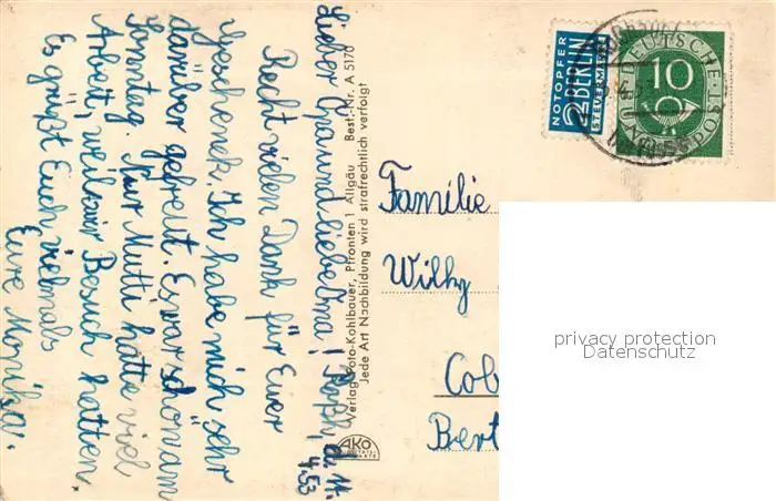 Fuessen_Allgaeu Lech Fuessen Allgaeu postalisch gelaufen 1953 Erhaltung siehe scans [NatalD47] NataID47