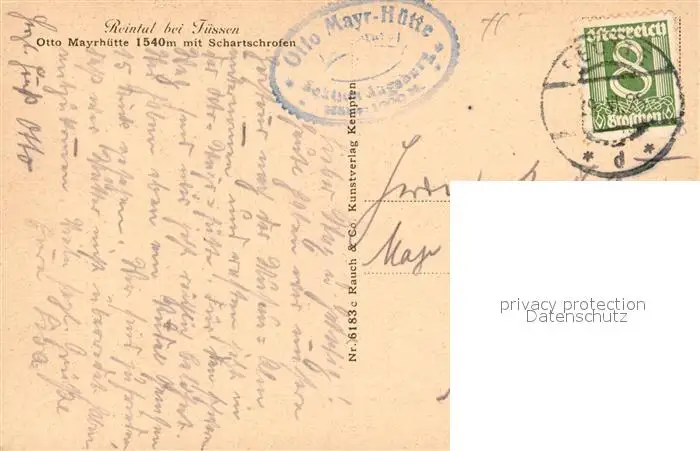 Fuessen_Allgaeu Otto Mayrhuette mit Schartschrofen Fuessen Allgaeu postalisch gelaufen 1925 Erhaltung siehe scans [WerneD78] WernPID7