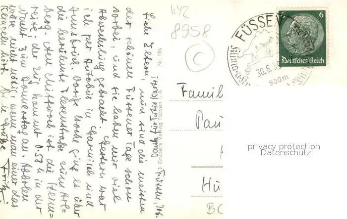 Fuessen_Allgaeu Panorama Fuessen Allgaeu postalisch gelaufen 1939 Erhaltung siehe scans [WerneD78] WernPID7