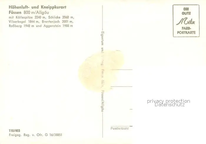 Fuessen_Allgaeu Panorama Hoehenluftkurort Kneippkurort Allgaeuer Alpen Fuessen Allgaeu postalisch nicht gelaufen nach 1965 Fliegeraufnahme Erhaltung siehe scans [FriedD77] Fliegeraufnahme Frierer