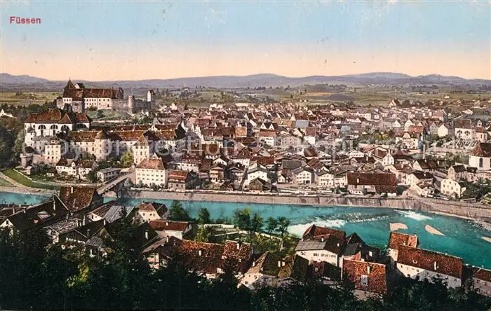 Fuessen_Allgaeu Panorama mit Hohem Schloss Fuessen Allgaeu postalisch gelaufen 1916 Erhaltung siehe scans [WerneD78] WernPID7