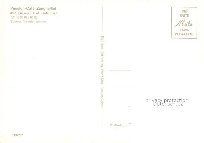 Fuessen_Allgaeu Pension-Cafe Zanghellini Fuessen Allgaeu postalisch nicht gelaufen nach 1965 Erhaltung siehe scans [LiesaD40] LiesID40