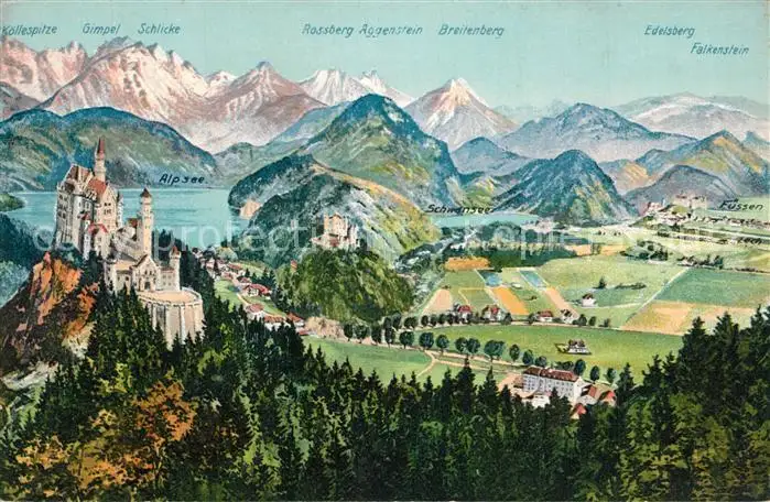 Fuessen_Allgaeu Schloss Neuschwanstein Fuessen Allgaeu postalisch nicht gelaufen bis 1920 Erhaltung siehe scans [WerneD78] WernPID7