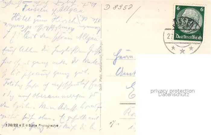 Fuessen_Allgaeu Schloss mit Saeuling Fuessen Allgaeu postalisch gelaufen 1921-1965 Erhaltung siehe scans [WerneD78] WernPID7