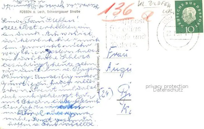 Fuessen_Allgaeu Schwangauer Strasse Fuessen Allgaeu postalisch gelaufen 1959 Erhaltung siehe scans [FriedD77] Frierer