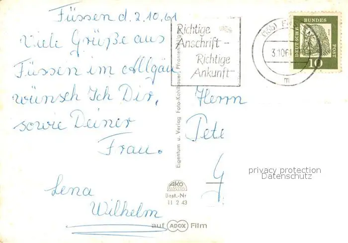 Fuessen_Allgaeu Tegelberghaus Forggensee Hopfensee Bannwaldsee Weissensee Alatsee Faulenbach Fuessen Allgaeu postalisch gelaufen 1961 Erhaltung siehe scans [LiesaD40] LiesID40