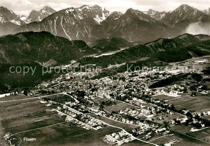 Fuessen Allgaeu Kategorie Alte Ansichtskarten Postkarten bx57236 Fuessen_Allgaeu mit Bad Faulenbach Fliegeraufnahme Fuessen Allgaeu postalisch nicht gelaufen nach 1965 Erhaltung siehe scans [WerneD78]