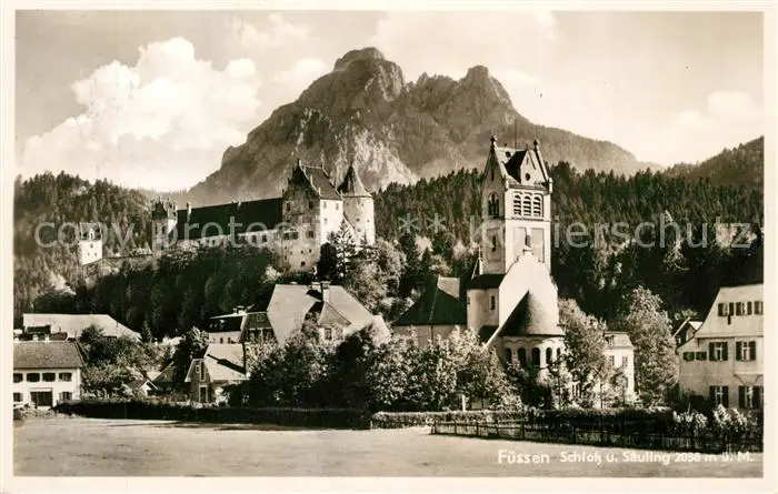 AK / Ansichtskarte Fuessen_Allgaeu mit Kirche Schloss und Saeuling Fuessen Allgaeu