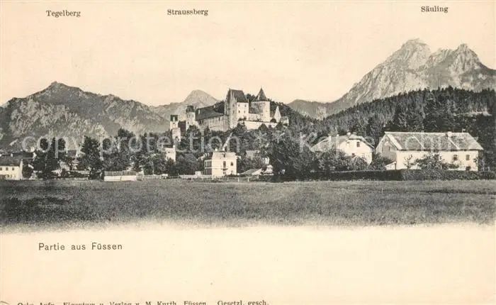 Fuessen_Allgaeu mit Tegelberg Straussberg Saeuling Fuessen Allgaeu postalisch nicht gelaufen 1895 Erhaltung siehe scans [WerneD78] WernPID7