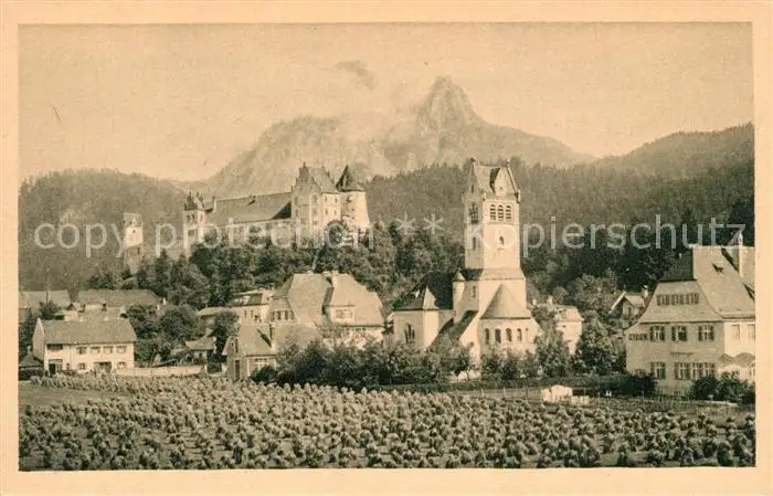 Fuessen_Allgaeu mit prot Kirche Schloss und Saeuling Fuessen Allgaeu postalisch nicht gelaufen 1923 Erhaltung siehe scans [WerneD78] WernPID7