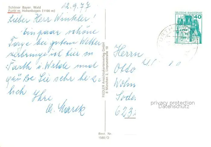 Furth_Wald Panorama Blick zum Hohenbogen Bayerischer Wald Furth_Wald postalisch gelaufen 1977 Erhaltung siehe scans [FriedD77] Frierer