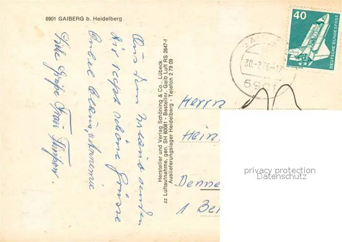 Gaiberg_Baden Fliegeraufnahme Gaiberg_Baden postalisch gelaufen 1976 Erhaltung siehe scans [WerneD78] WernPID7