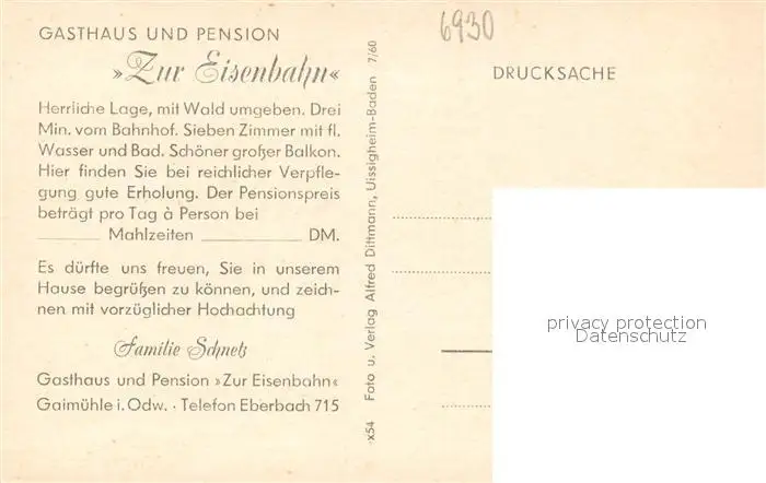 Gaimuehle_Eberbach Gasthaus Pension Zur Eisenbahn Panorama Gaimuehle_Eberbach postalisch nicht gelaufen nach 1965 Erhaltung siehe scans [KathaD81] Kathoren
