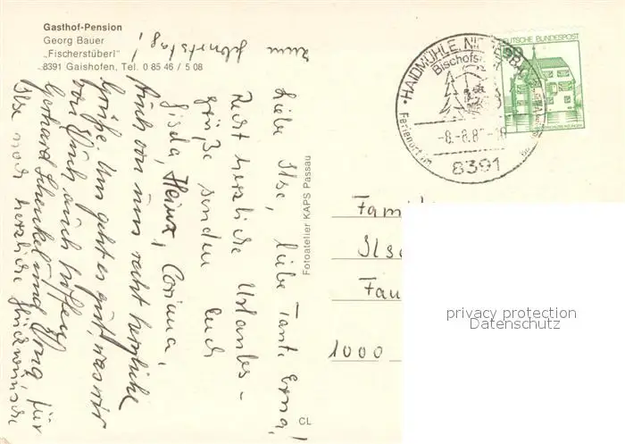 Gaishofen Gasthof Pension Fischerstueberl Gaststube Terrasse Gaishofen postalisch gelaufen ca. 1980 Erhaltung siehe scans [FriedD77] Frierer