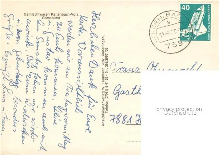 Gamshurst Kategorie Alte Ansichtskarten Postkarten bx96134 Gamshurst Denkmal Ladenschaeft Fachwerkhaus Strassenpartie Storchennest Haus am See Gamshurst postalisch gelaufen 1970 Erhaltung siehe scans [FriedD77]