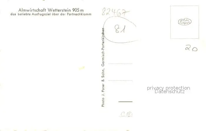 Garmisch-Partenkirchen Almwirtschaft Wetterstein Ausflugsziel ueber der Partnachklamm Alpen Garmisch-Partenkirchen postalisch nicht gelaufen 1921-1965 Erhaltung siehe scans [FriedD77] Frierer