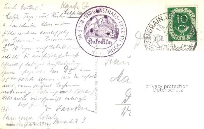 Garmisch-Partenkirchen Aulealm Gaststube Landschaftspanorama Riessersee Waxenstein Zugspitzgruppe Wettersteingebirge Garmisch-Partenkirchen postalisch gelaufen 1953 Erhaltung siehe scans [FriedD77] Frierer