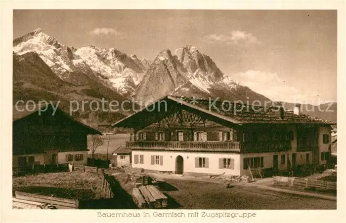 Garmisch-Partenkirchen Bauernhaus mit Zugspitzgruppe Garmisch-Partenkirchen postalisch nicht gelaufen 1921-1965 Erhaltung siehe scans [WerneD78] WernPID7