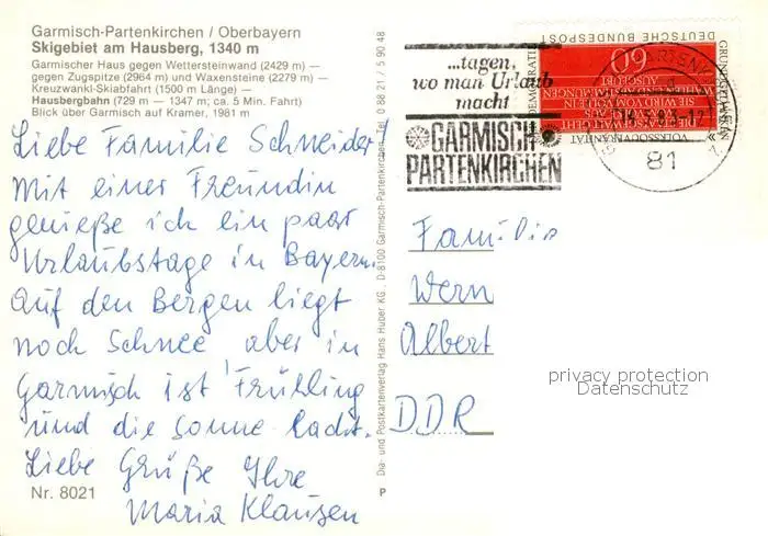 Garmisch-Partenkirchen Berggasthof Garmischer Haus Skigebiet am Hausberg Bergbahn Alpenpanorama Garmisch-Partenkirchen postalisch gelaufen 1983 Erhaltung siehe scans [FriedD77] Frierer