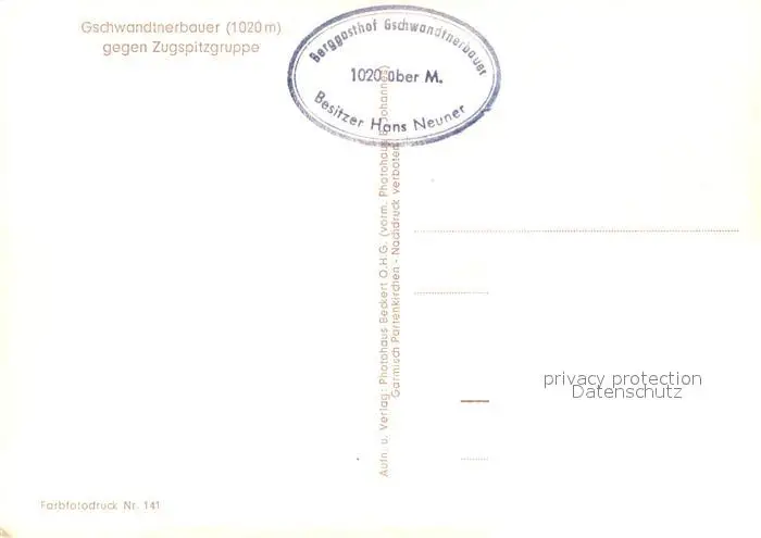 Garmisch Partenkirchen Kategorie Alte Ansichtskarten Postkarten bx52707 Garmisch Partenkirchen Berggasthof Gschwandtnerbauer gegen Zugspitze Wettersteingebirge Garmisch Partenkirchen postalisch nicht gelaufen nach 1965 Erhaltung siehe scans [FriedD77]
