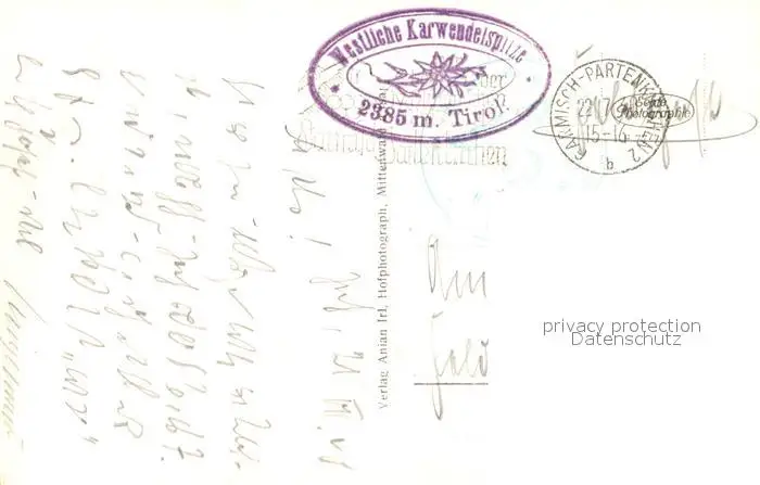 Garmisch-Partenkirchen Blick vom Anstieg zur Tiefkarspitze auf westliche Karwendelspitze Gebirgspanorama Garmisch-Partenkirchen postalisch gelaufen 1940 Feldpost Erhaltung siehe scans [FriedD77] Feldpost Frierer