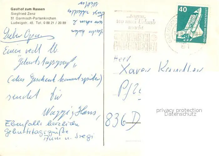 Garmisch-Partenkirchen Gasthof zum Rassen Garmisch-Partenkirchen postalisch gelaufen 1976 Erhaltung siehe scans [FriedD77] Frierer