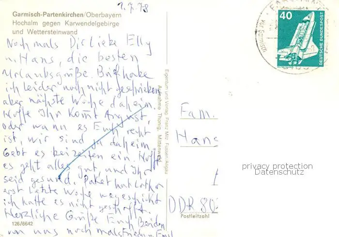 Garmisch-Partenkirchen Hochalm geg. Karwendelgebirge u. Wettersteinwand Garmisch-Partenkirchen postalisch gelaufen 1978 Erhaltung siehe scans [LiesaD40] LiesID40