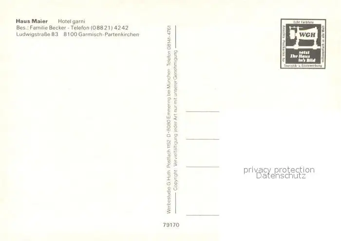 Garmisch-Partenkirchen Hotel Haus Maier Garmisch-Partenkirchen postalisch nicht gelaufen nach 1965 Erhaltung siehe scans [FriedD77] Frierer