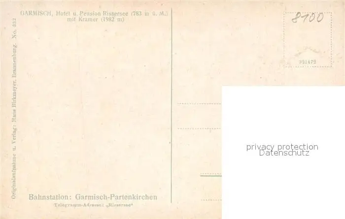 Garmisch-Partenkirchen Hotel Pension Rissersee mit Kramer Garmisch-Partenkirchen postalisch nicht gelaufen bis 1920 Erhaltung siehe scans [LiesaD40] LiesID40