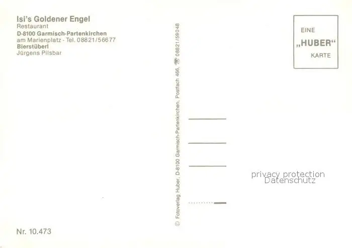 Garmisch-Partenkirchen Isis Goldener Engel Restaurant Huber Karte Nr 10473 Garmisch-Partenkirchen postalisch nicht gelaufen nach 1965 Erhaltung siehe scans [FriedD77] Frierer