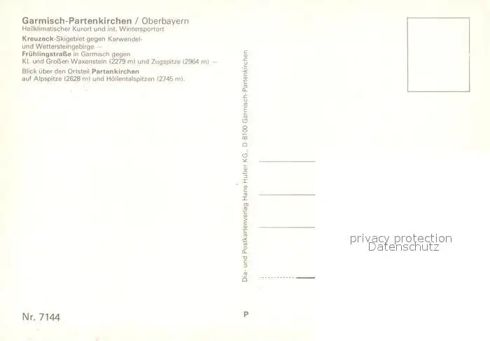 Garmisch-Partenkirchen Kreuzeck Fruehlingsstrasse Garmisch-Partenkirchen postalisch nicht gelaufen nach 1965 Erhaltung siehe scans [LiesaD40] LiesID40