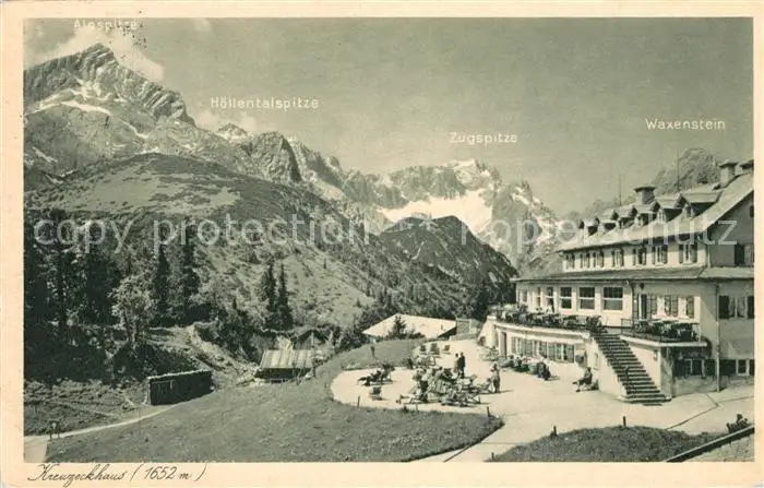 AK / Ansichtskarte Garmisch Partenkirchen Kreuzeckhaus Berggasthaus Alpspitze Zugspitze Wettersteingebirge Garmisch Partenkirchen