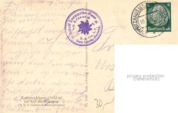 Garmisch-Partenkirchen Kreuzeckhaus Berggasthaus Alpspitze Zugspitze Wettersteingebirge Garmisch-Partenkirchen postalisch gelaufen 1935 Erhaltung siehe scans [FriedD77] Frierer