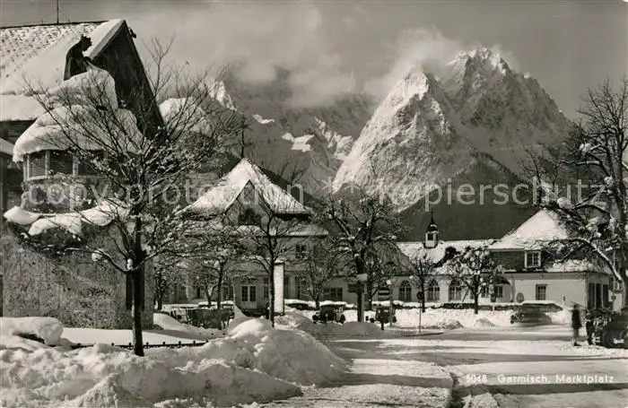AK / Ansichtskarte Garmisch Partenkirchen Marktplatz Zugspitzegruppe Wettersteingebirge im Winter Garmisch Partenkirchen