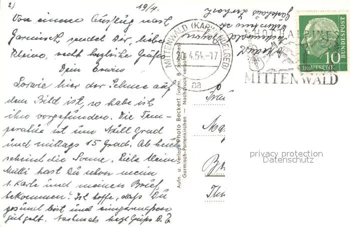 Garmisch-Partenkirchen Marktplatz Zugspitzegruppe Wettersteingebirge im Winter Garmisch-Partenkirchen postalisch gelaufen 1954 Erhaltung siehe scans [FriedD77] Frierer
