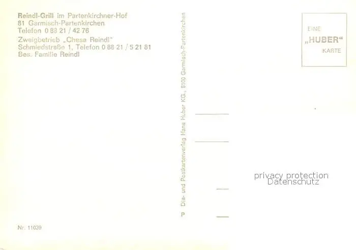 Garmisch-Partenkirchen Reindl-Grill Partenkirchner-Hof Garmisch-Partenkirchen postalisch nicht gelaufen nach 1965 Erhaltung siehe scans [PaolaD17] PaolPID1