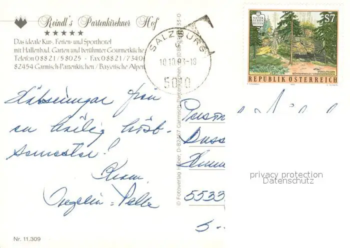 Garmisch-Partenkirchen Reindls Partenkirchner Hof Garmisch-Partenkirchen postalisch gelaufen 1993 Erhaltung siehe scans [WerneD78] WernPID7
