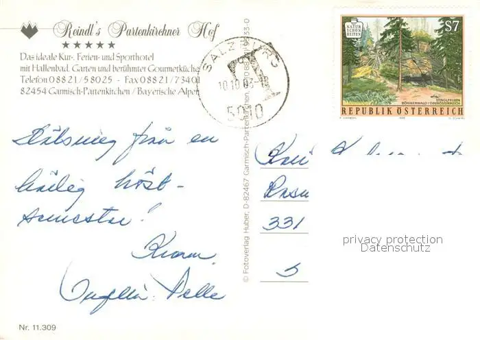 Garmisch-Partenkirchen Reindls Partenkirchner Hof Garmisch-Partenkirchen postalisch gelaufen 2003 Erhaltung siehe scans [WerneD78] WernPID7