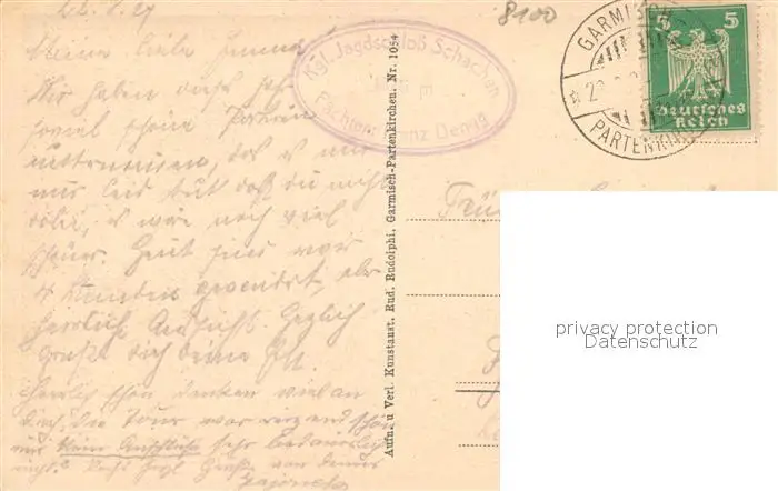 Garmisch-Partenkirchen Schloss am Schachen mit Dreitorspitze Garmisch-Partenkirchen postalisch gelaufen 1924 Erhaltung siehe scans [LiesaD40] LiesID40