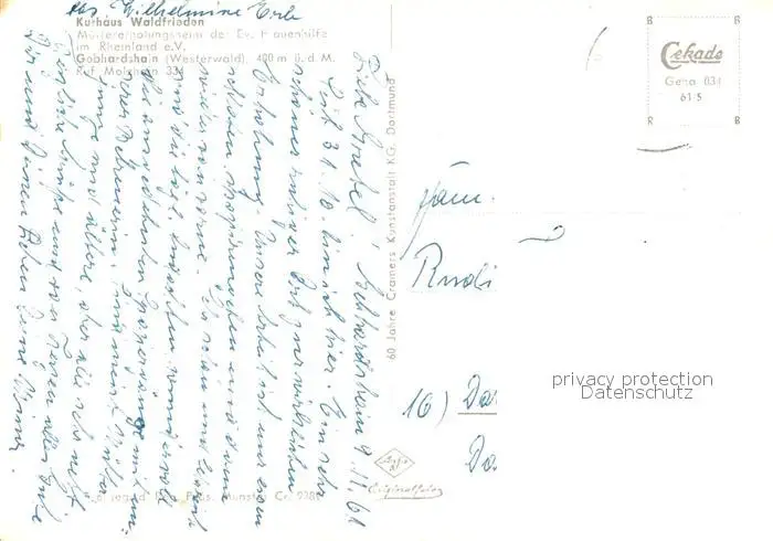Gebhardshain Fliegeraufnahme Kurhaus Waldfrieden Gebhardshain postalisch gelaufen 1961 Erhaltung siehe scans [LiesaD40] LiesID40