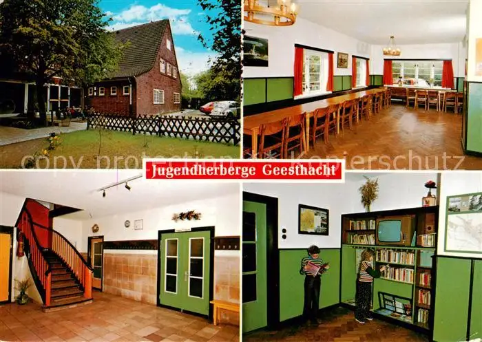 AK / Ansichtskarte Geesthacht_Elbe Jugendherberge Geesthacht Speisesaal Treppenaufgang Buecherei Geesthacht_Elbe