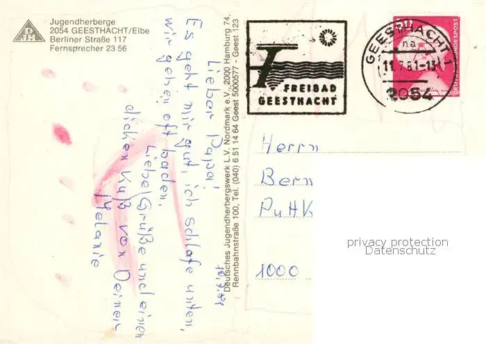 Geesthacht_Elbe Jugendherberge Geesthacht Speisesaal Treppenaufgang Buecherei Geesthacht_Elbe postalisch gelaufen 1981 Erhaltung siehe scans [WerneD78] WernPID7