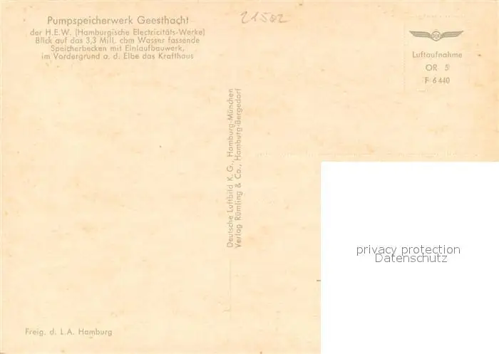 Geesthacht_Elbe Pumpspeicherwerk Fliegeraufnahme Geesthacht_Elbe postalisch nicht gelaufen nach 1965 Erhaltung siehe scans [WerneD78] WernPID7