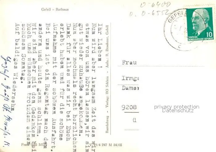 Gefell_Schleiz Rathaus Gefell_Schleiz postalisch gelaufen nach 1965 Erhaltung siehe scans [KathaD81] Kathoren