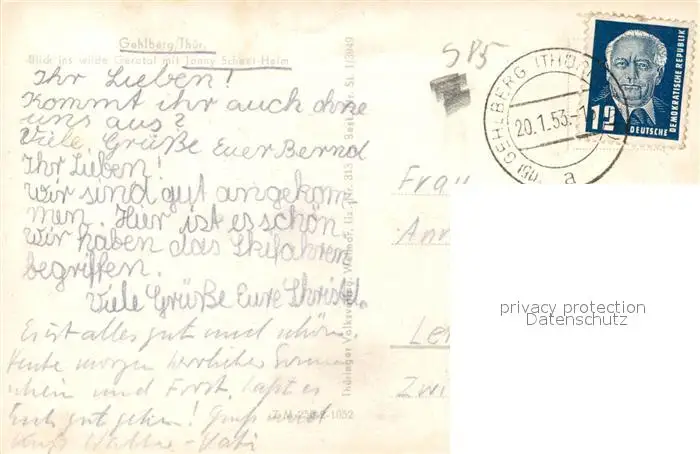 Gehlberg Blick ins wilde Geratal mit Jonny Scheer Heim Gehlberg postalisch gelaufen 1953 Erhaltung siehe scans [FriedD77] Frierer