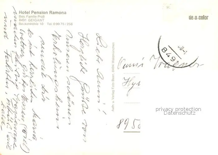 Geigant Kategorie Alte Ansichtskarten Postkarten bx50159 Geigant Hotel Pension Ramona Bdesee Campingplatz Landschaftspanorama Geigant postalisch gelaufen nach 1965 Erhaltung siehe scans [FriedD77]