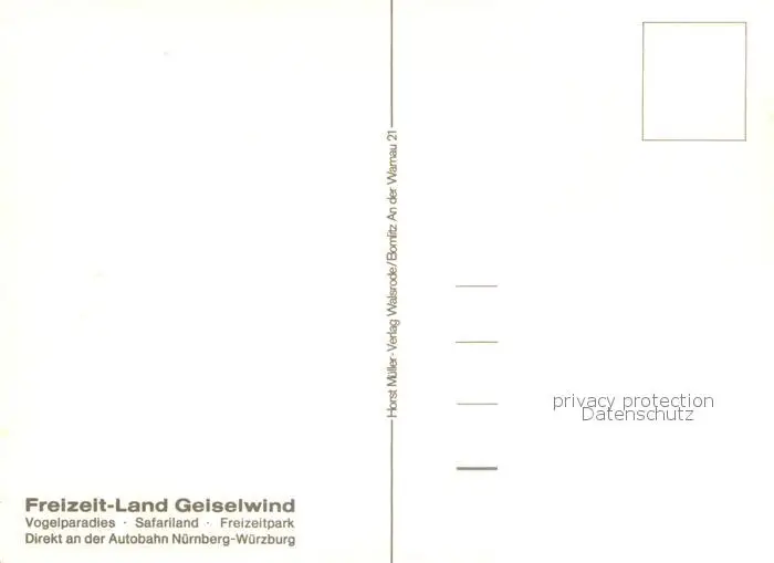 Geiselwind Freizeit Land Geiselwind Vogelparadies Safariland Freizeitpark Geiselwind postalisch nicht gelaufen nach 1965 Erhaltung siehe scans [FriedD77] Frierer