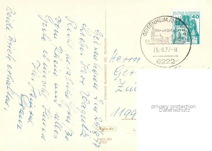 Geisenheim Roemerberg mit Rheingauer Dom Lindenplatz Schloss Johannisberg Rathaus Rheinanlagen Geisenheim postalisch gelaufen 1977 Erhaltung siehe scans [WerneD78] WernPID7