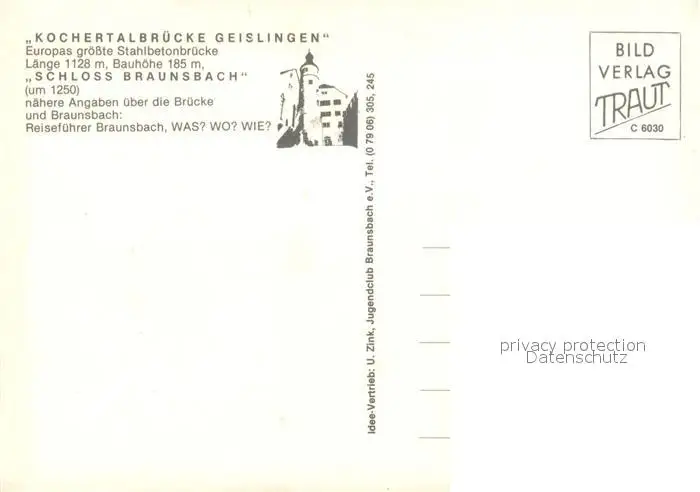 Geislingen_Kocher Kochertalbruecke Schloss Braunsbach Geislingen Kocher postalisch nicht gelaufen nach 1965 Erhaltung siehe scans [WerneD78] WernPID7