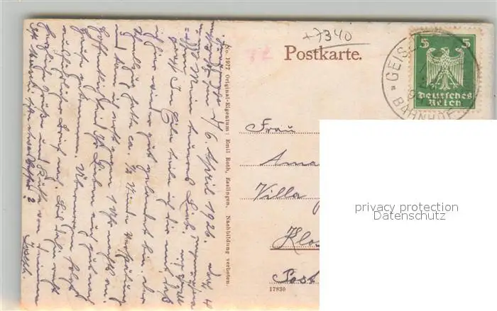 Geislingen_Steige Oedenturm Geislingen_Steige postalisch gelaufen 1926 Erhaltung siehe scans [WerneD78] WernPID7